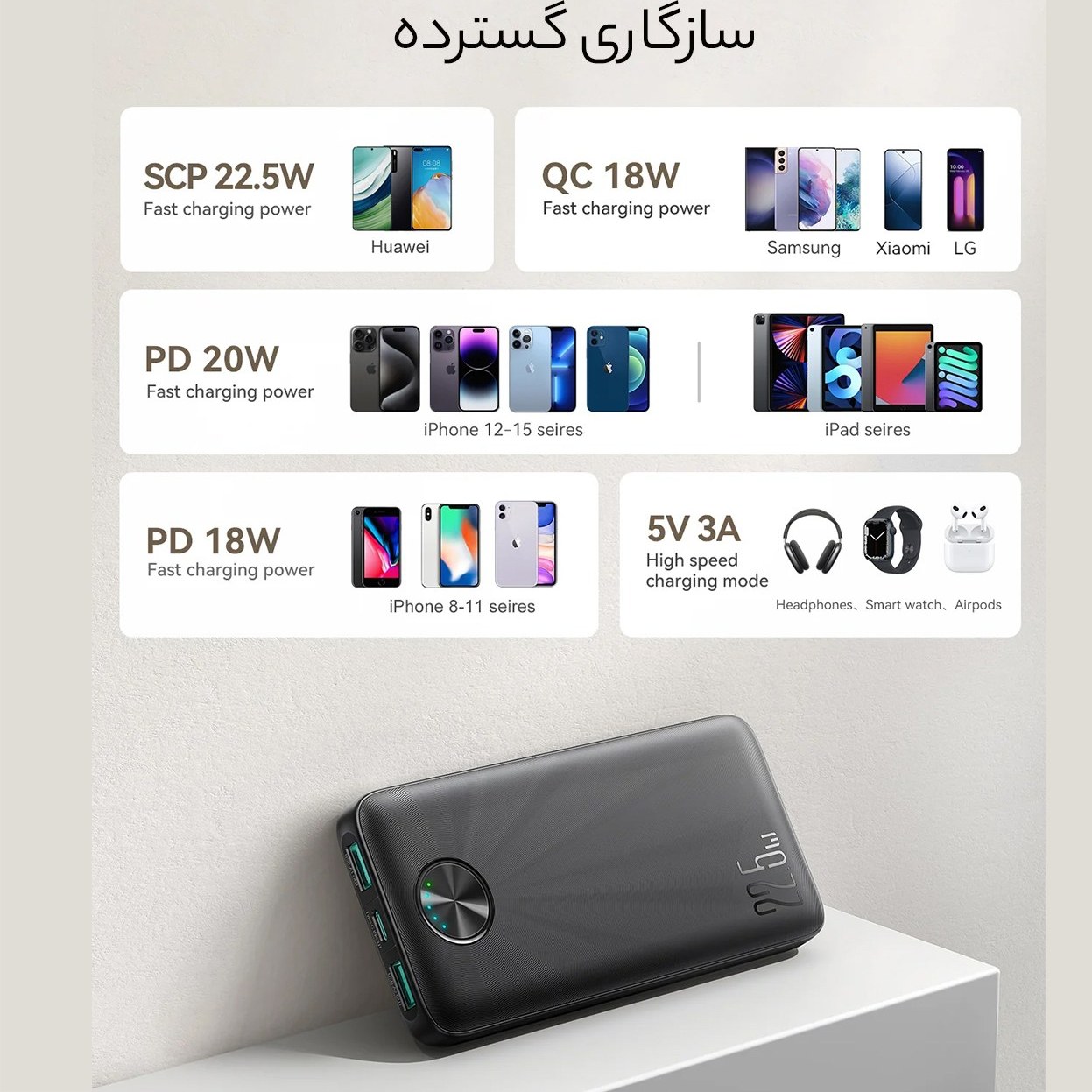 پاوربانک جوی روم مدل JR-PBF15 ظرفیت ۱۰ هزار میلی آمپر ساعت ۲۲.۵ وات