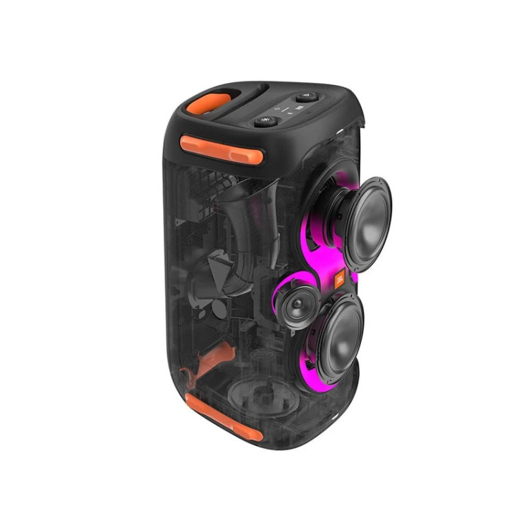 ظرفیت باتری ۳۶ وات ساعت / دارای کلید پاور، کلید روشن و خاموش کردن بلوتوث، غلتک مشترک برای تنظیم صدا و کنترل محتوای در حال پخش، غلتک تغییر حالت نورپردازی، دکمهی فعال و غیرفعال کردن Bass Boost، غلتک تنظیم صدای میکروفون، غلتک تنظیم صدای گیتار، دکمهی فعال و غیرفعال کردن TWS Mode بر روی بدنه اسپیکر / دارای نشانگر LED / دارای گواهینامه IPX۴ / قابلیت TWS Mode برای اتصال دو اسپیکر به یکدیگر و ایجاد صدای استریو /