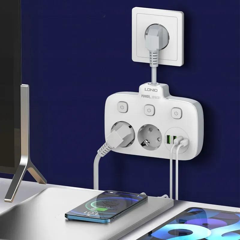 چند راهی برق و شارژر الدینیو مدل SE2435 دارای 4 پورت
