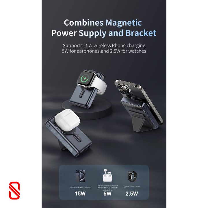 این پاوربانک با طراحی فوق العاده سخت افزاری مجهز به یک پد شارژ بیسیم بوده و بسیاری از دستگاههای مجهز به فناوری مگ سیف را با سرعتی قابل توجه شارژ میکند.