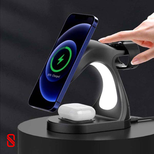 استند شارژ با طراحی سیم پیچ پیشرفته ساخته شده است که شارژ را کاملا ایمن و سریع میکند. با این شارژر و لامپ رومیزی بیسیم میتوانید چندین دستگاه را همزمان شارژ کنید.